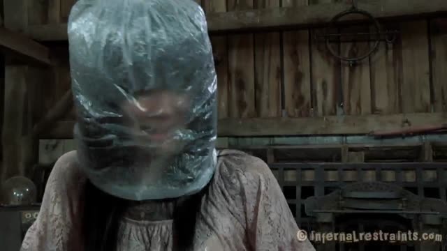 Sexy brunette Lyla Storm strictly restrained in stocks and mercilessly throat trained by 2 cocks!